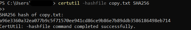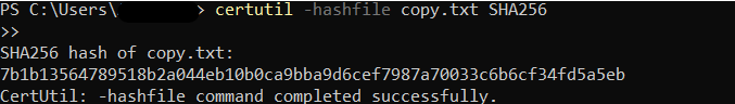 To demonstrate integrity checking using cryptographic hashes, I used CertUtil, a built-in Windows utility, to generate and verify SHA256 hashes on local files. This technique is vital in areas like forensics, secure backups, and malware detection, where detecting unauthorized changes is critical.