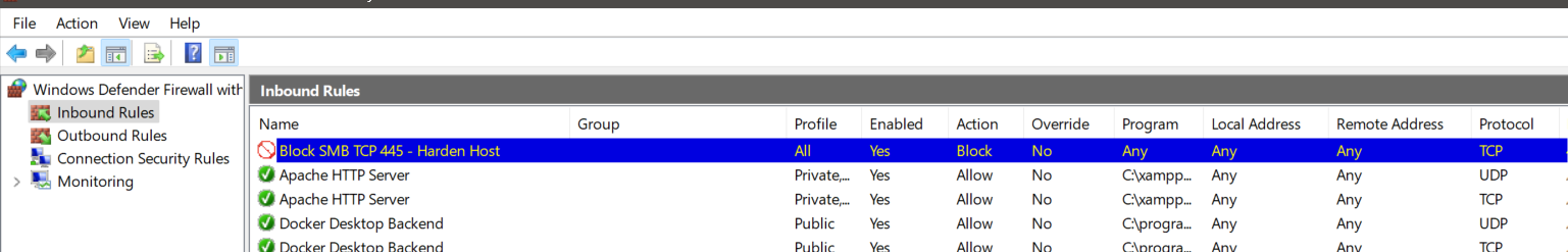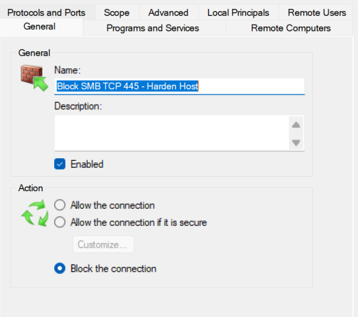 Block SMB TCP 445 - Harden Host