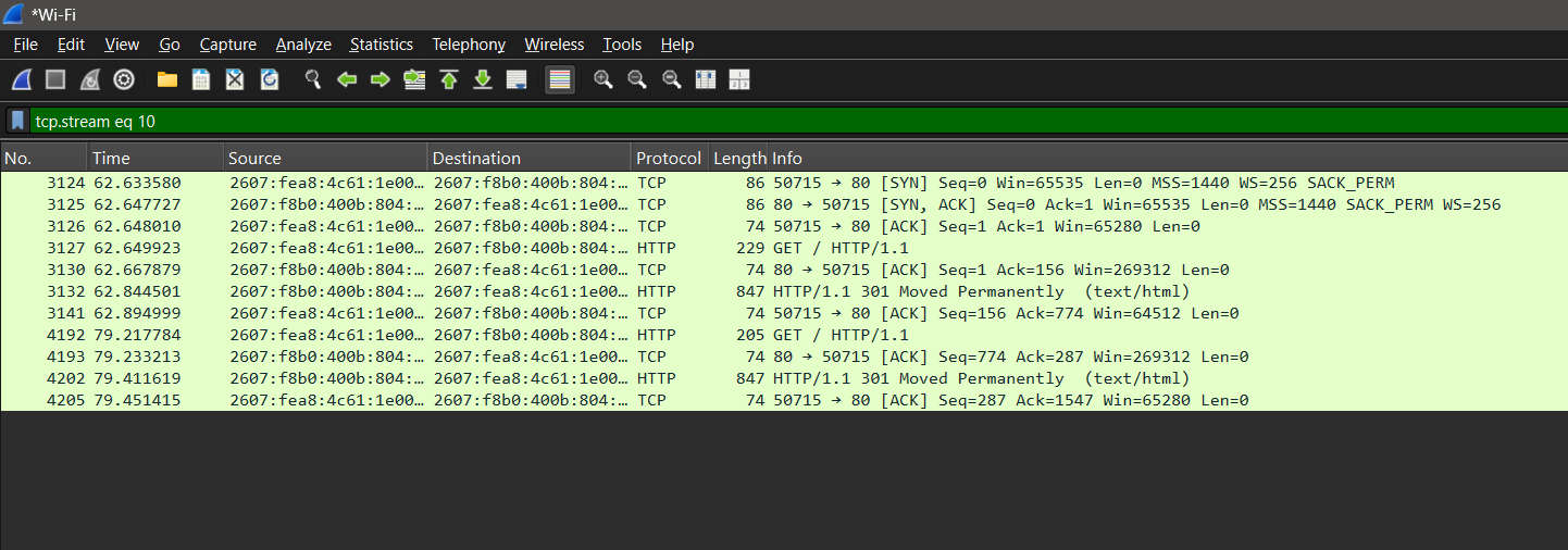 As part of a demonstration in network analysis, I captured a TCP three-way handshake using Wireshark. This is the process by which two devices establish a reliable connection over TCP.